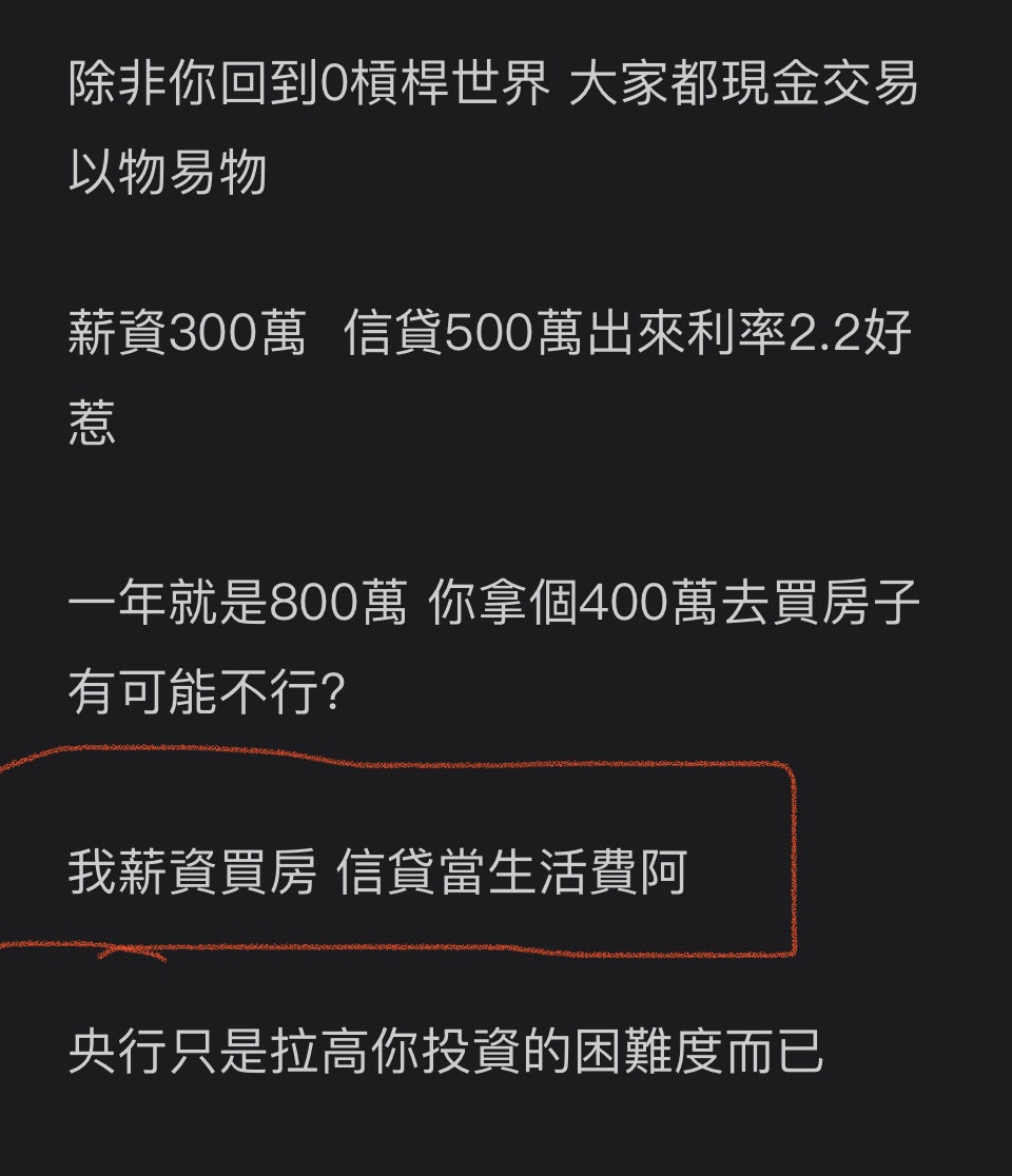 → yiliang1107: 沒有,他說的用信貸當生活費,薪資繳貸款。這個我也 10/26 12:06