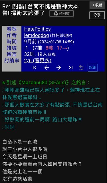 → ZhuBeiCity: 種沒良心的低端人種 希望賴總統繼續把它們打死最好 11/03 22:05