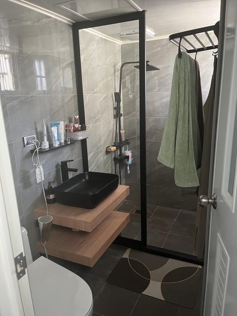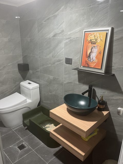: 含防水全部重做, 也作為貓砂盆放置處, 沒有對外窗, 不用來淋浴, 台達靜音抽風機24H開?