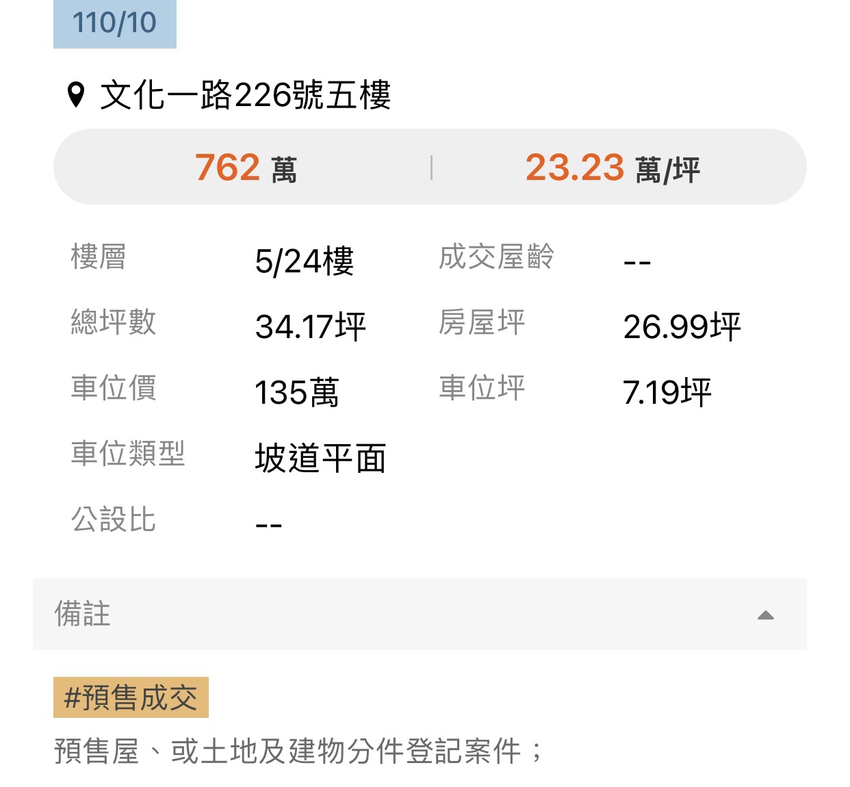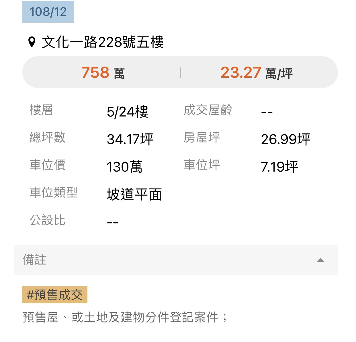 → lasoon: 用含車位算單價都是耍流氓,哪有一坪賣40萬的車位XD 11/11 18:05