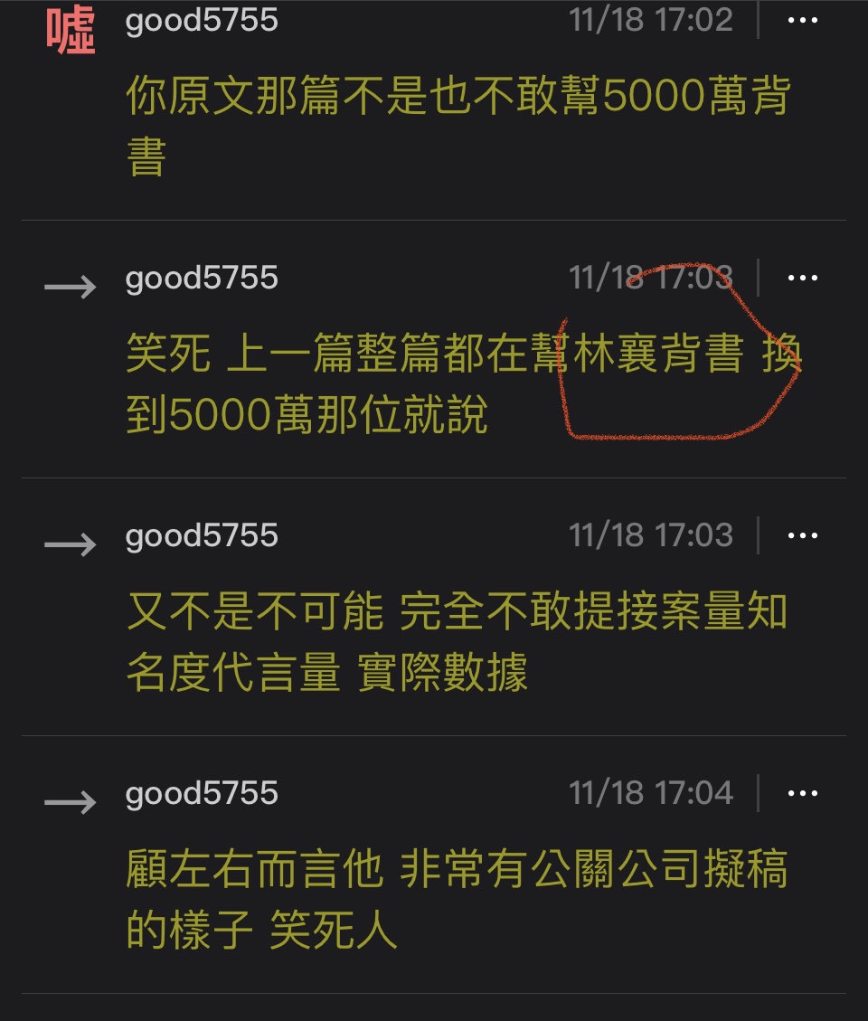 噓 good5755: 你原文那篇不是也不敢幫5000萬背書 11/18 17:02