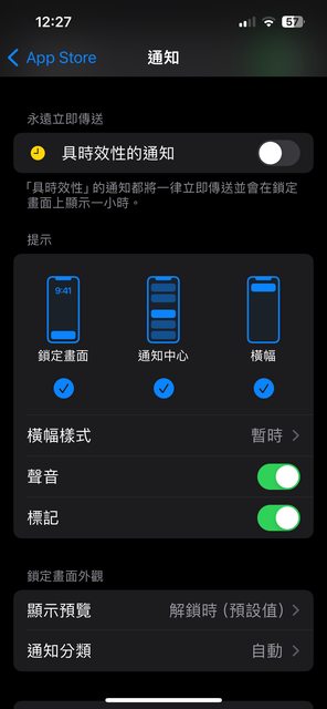 在設定裡的通知,選項都全開