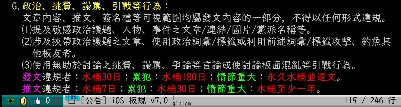 hollen9 : 廣義的政治 萬事都是政治 狹義的版規寫很清楚 10/20 11:43