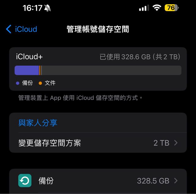 推 lancast: iCloud備份 整個關掉。然後 備份全部刪掉 等它校正回歸06/08 17:15