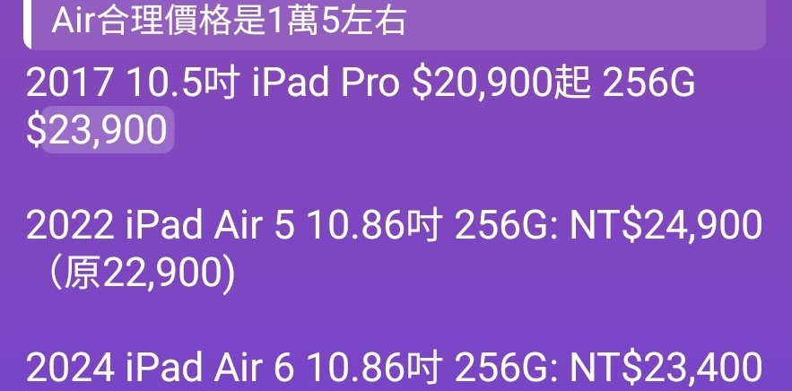 → gary8442: 2024Air 60Hz LCD 還不如2017Pro 120Hz LCD 06/14 15:19