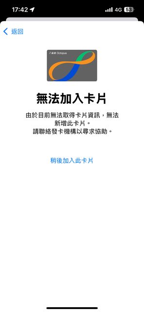 Apple表示後台看我的八達通卡在舊設備內,但由於舊設備已經被直營店收回,