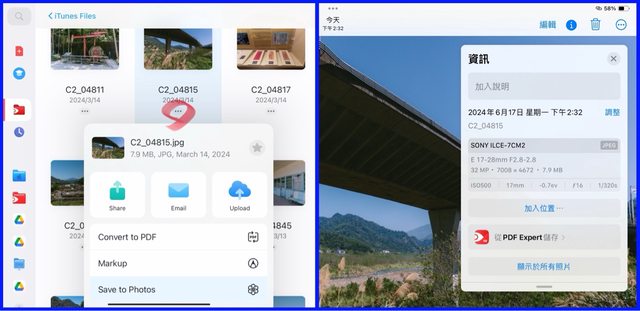 (Ps.原照片存放於PDF Expert,再匯入相機膠卷)
