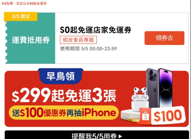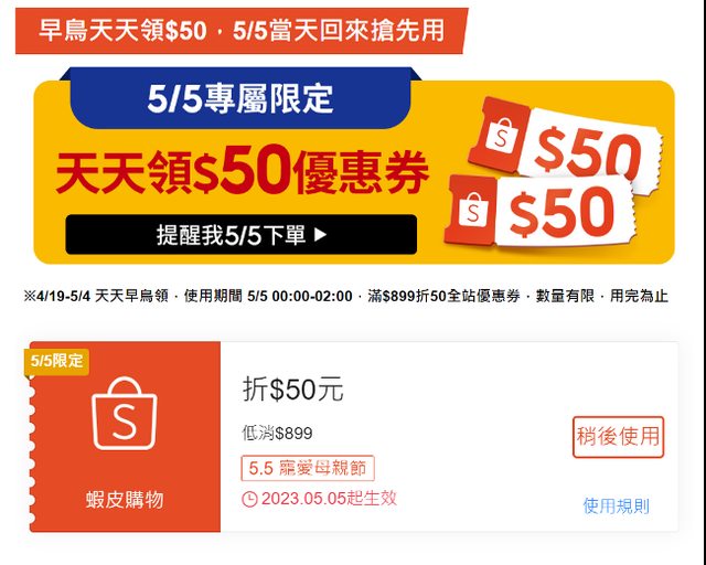 推 KyA: 2023/5/1起優惠券限蝦皮APP使用,如欲使用請 182.155.60.177 05/01 20:34