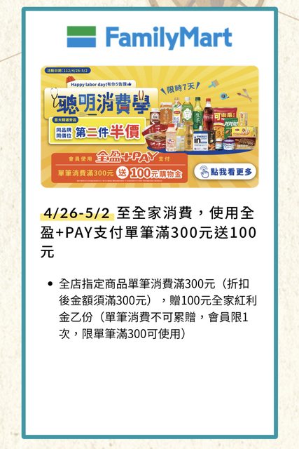 → kkkk1234: B帳號消費滿400-100再付300一樣送100嗎 114.37.131.192 04/29 15:37