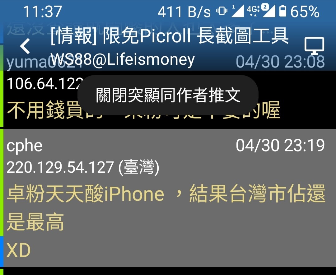 → qmars: 第一次聽到手機不能長截圖 看來見識太少 61.223.23.223 04/30 14:52