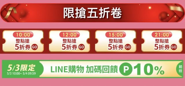 今天有5折券、LINE導購正官庄全系列10%回饋