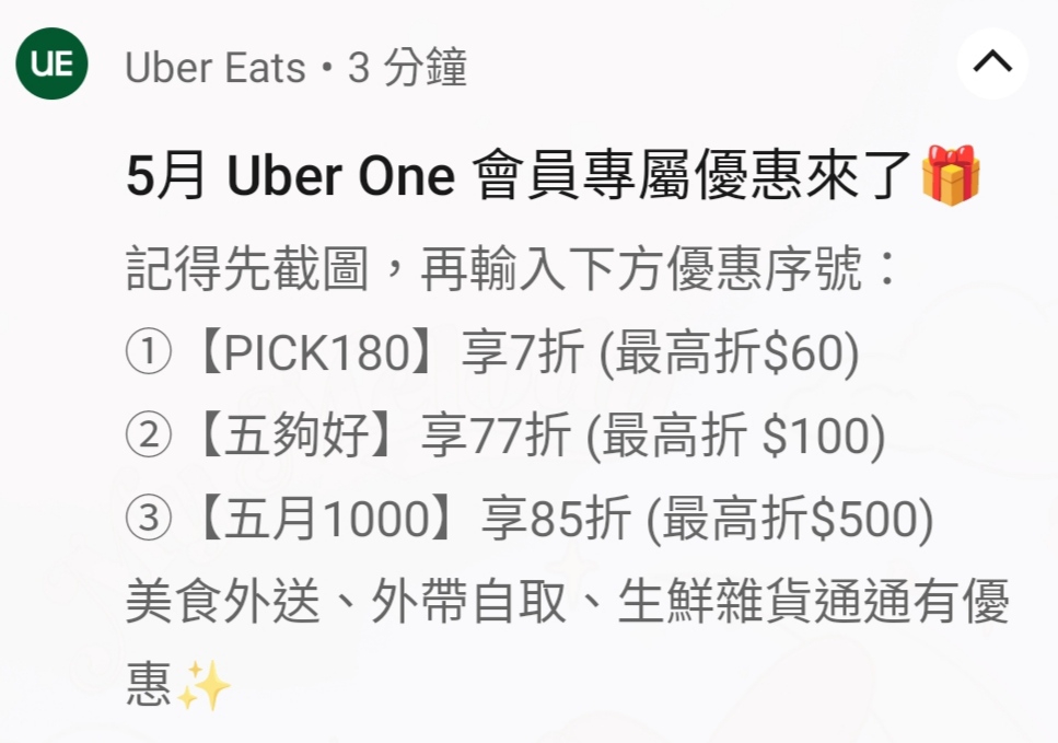 推 AE0607: 剛剛登入ubereats 被送了兩個月會員 39.14.0.156 05/06 18:05