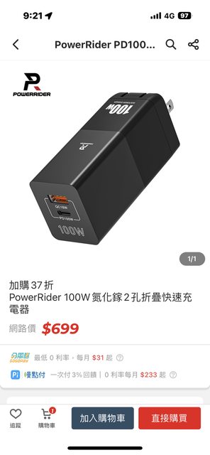 → hollen9: 買來充 macbook air 跑滿 100W 不錯 60.248.107.64 05/11 16:12
