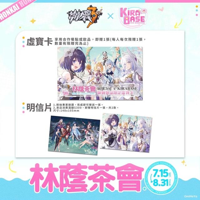 於《崩壞3rd》、KIRABASE粉絲專頁按讚,即贈明信片一張(全2款)。