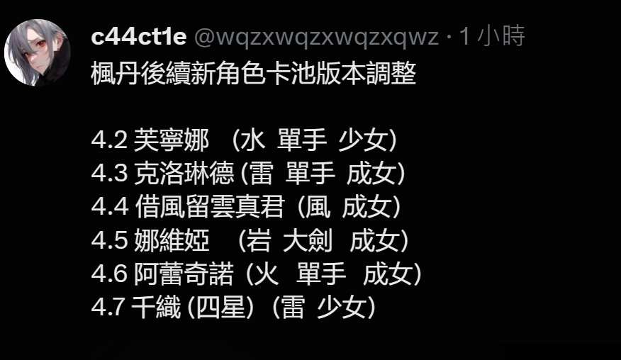 推 magicwater: 楓丹誰進常駐池阿? 08/06 13:26