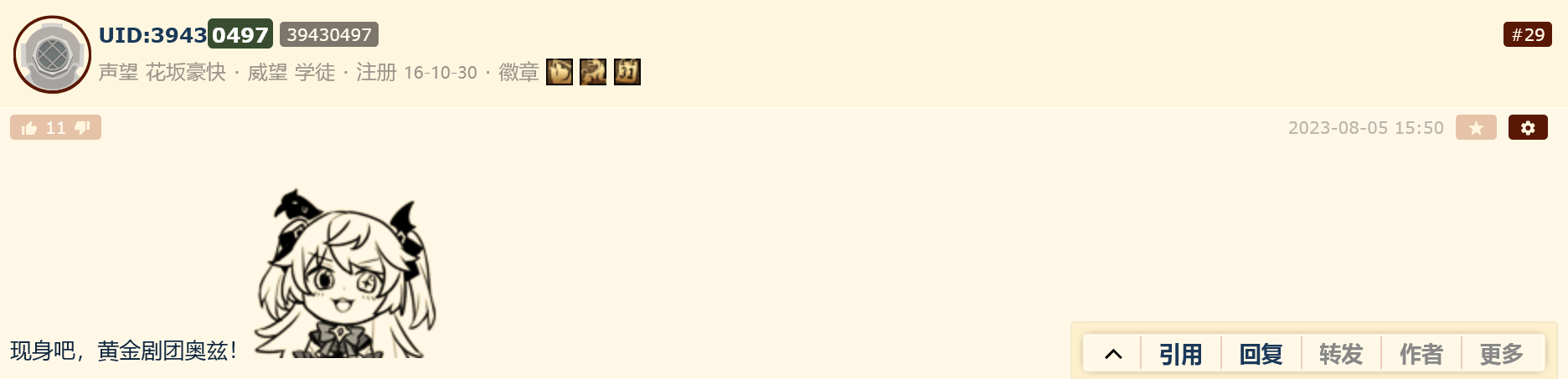 → yuzukeykusa: 挖 神子可以刷第三套了…謝謝米哈遊加大300格讓我刷= 08/11 12:19