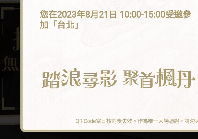 第一輪線下觀展預約結果已公布,請登入活動網頁或個人信箱查看預約結果,兩輪預約皆