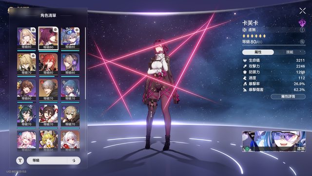 初期送的娜塔紗打到後面奶力快hold不住了,只好把羅剎拉上來用