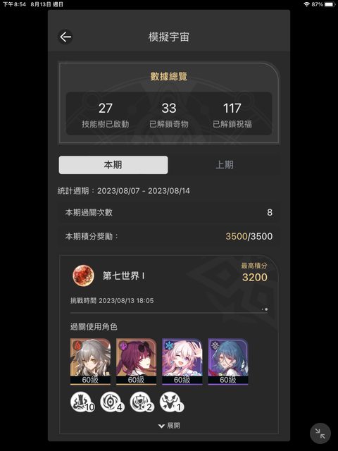 抽卡週期也是很漫長 之後可能還是試著把其他角色拉上來看看能推多少混沌回憶