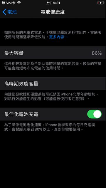 電池健康度86%