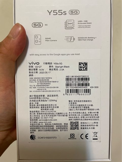 欲售物品:VIVO Y55s 5G 黑(4GB/128GB ROM)