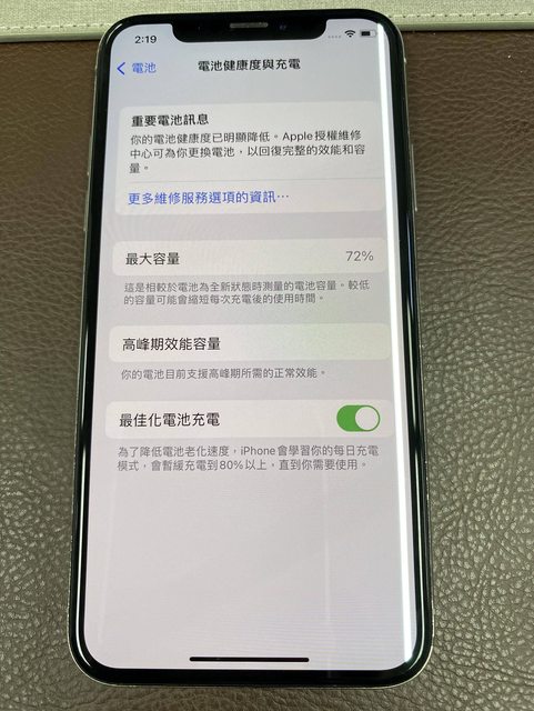 物品狀況:整體約7成新,電池健康度72%,手機摔到螢幕右邊有一條線,使用功能都正常