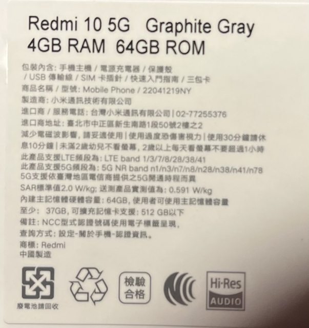 標題[賣//] 賣/台北/面交 紅米 Redmi 10 5G 石墨灰