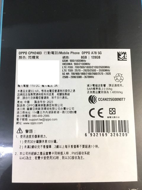 保固日期:一年(OPPO原廠保固)