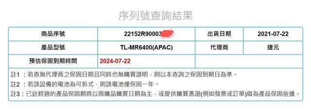 保固日期:2024/07/22