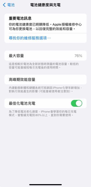 物品狀況:8成新,電池健康度76%,無更換過電池,使用正常中