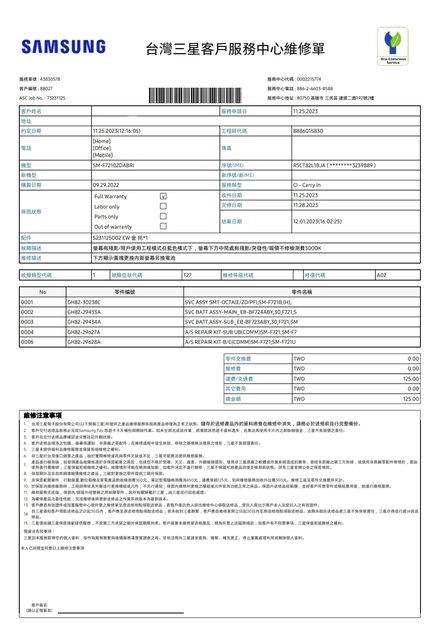 保固內免費更換、折疊轉軸、電池、金屬邊框、折疊面板、面板保護貼