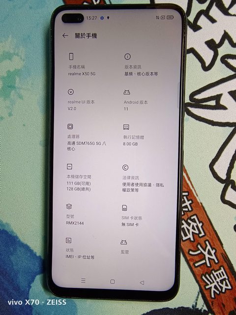 欲售物品:realme x50 8g/128g