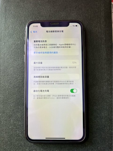 物品狀況:電池健康度72%,平常都是裝在保護殼內,有貼保護貼,未拆機維修過