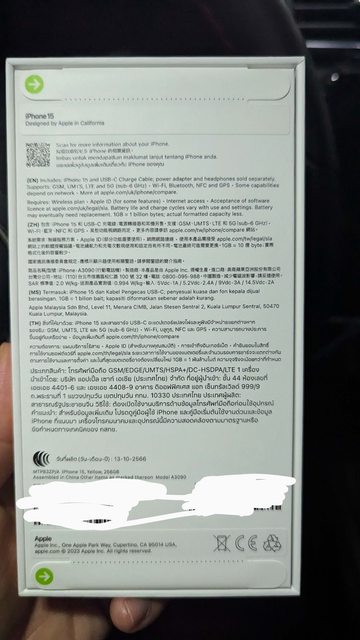 欲售物品:iPhone 15 256G 黃
