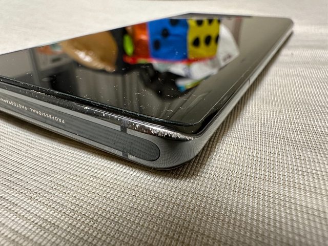 因從事建築業灰塵較多,所以手機邊角被保護殼夾雜的沙塵磨損出一些痕跡(不是摔傷的