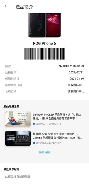 欲售物品:ROG Phone 6 白色 物品狀況:專賣店購買,外觀沒什麼特別外傷,有使用保護貼,其他請參考照片 購買來源:asus專賣店 NCC 認證:CCAF225G0290T0 盒裝內含:原廠65W充電組、空氣動力扇&專屬殼 購買日期:2022/7/21 保固日期:過保 購入價格:33990 欲售價格:NT$14000 交易方式:好賣家 貨到付款 實品圖片: 升級8代售出,剛過保幾天,另附其他殼