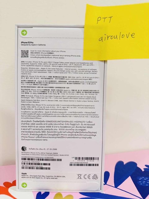 盒裝內含:iPhone 15 Pro 本體及USB-C充電連接線