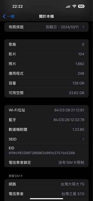 保固日期:2024/10/11