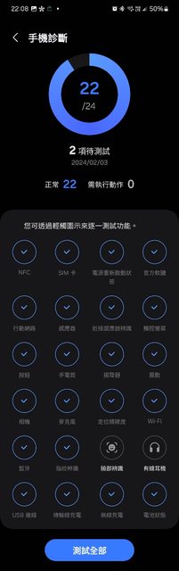 4.附上內建手機診斷,沒設定臉部辨識,沒typeC耳機,所以差兩項檢查 ^_^