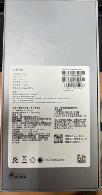 欲售物品:VIVO V29 12GB+512GB 藍色