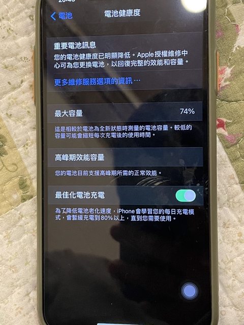 物品狀況:二手,人臉辨識異常,電池原廠健康度74,外觀小傷,螢幕有小痕跡貼保貼看
