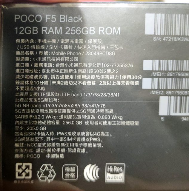 欲售物品:POCO F5 黑色 全新未拆 12GB 256GB