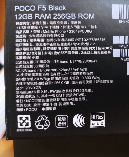 標題[賣/台北/皆可] POCO F5 黑色 僅拆封未使用12G