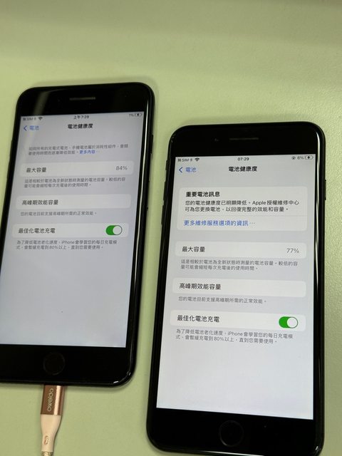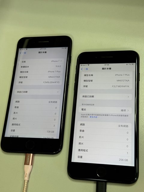 欲售物品:iphone 7 128g 電池84%(圖左)