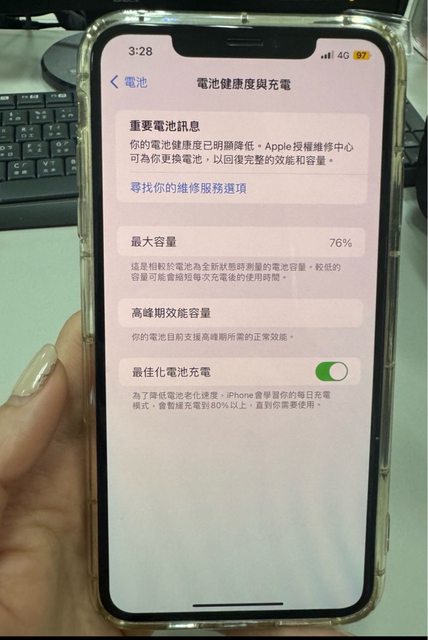 換新手機故出售舊款,一拿到手機就全機包膜,有正常的使用痕跡,電池健康度 76%,