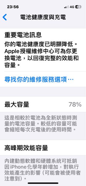 電池健康度78%,若非常在意可再更新電池