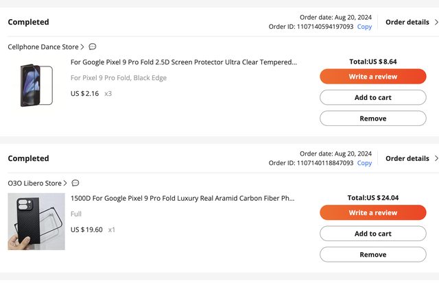欲售物品:Pixel 9 Pro Fold 碳纖保護殼*1 + 玻璃保護貼*3