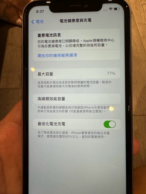 物品狀況:全機帶殼貼膜使用,無明顯劃痕,有稍微使用痕跡,電池健康度77%(未更換