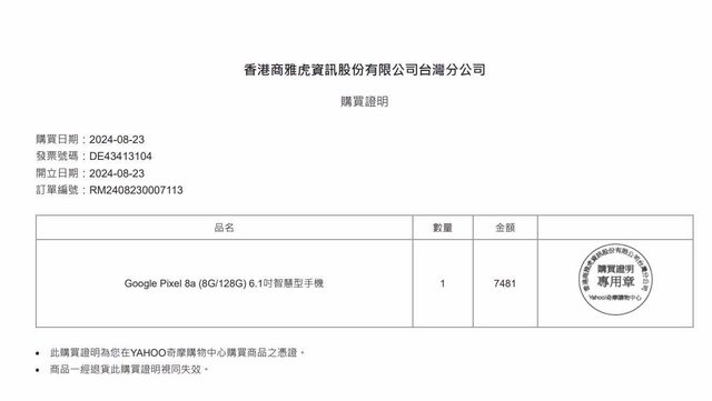 購買日期:8/23