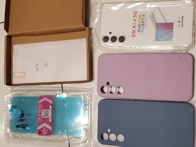 三個個保護殼,一個是透明全新,兩個矽膠,紫色已用過,藍色全新